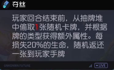 技能1夺丝:这蜘蛛每回合都会偷牌,而且会根据牌的种类提升自己的额外属性,但血量每次减少20%都会“吐”回来一张...有点恶心...