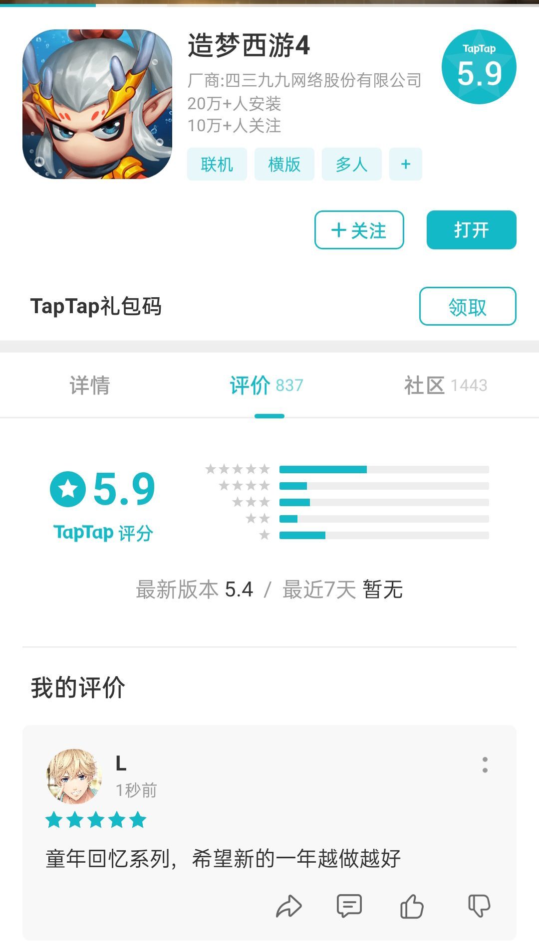 截图:(TapTap的评价)