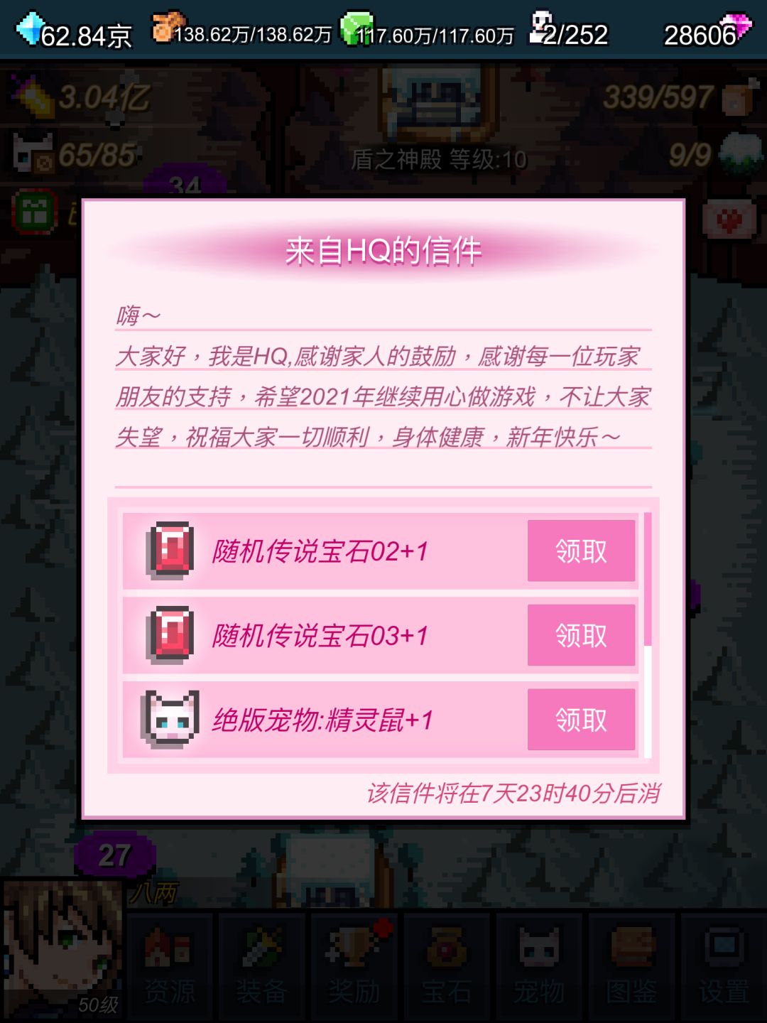 在游戏的世界地图界面,点击右上角的粉红色小信封即可领取奖励。