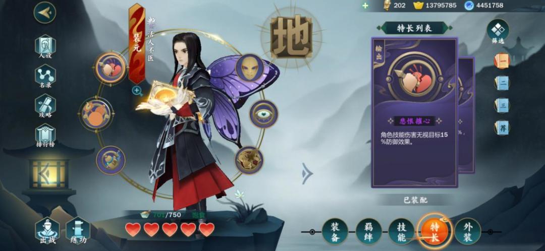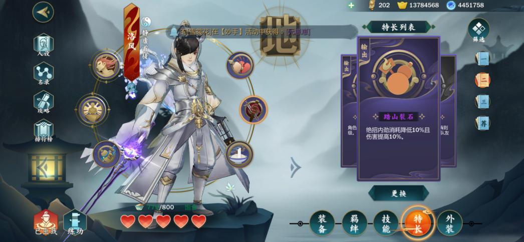 大道入化+洞察人心+悲恨摧心+踏山裂石+无双一击/移花接木+同心合璧