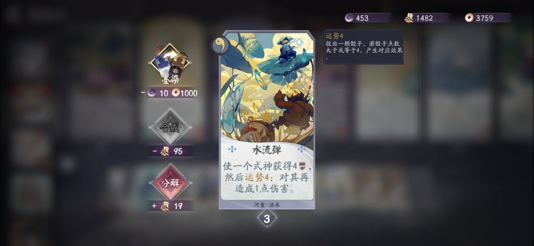我带这卡单纯是看中了这个运势4,帮座敷扔骰子用(福满乾坤要发动还是有点难的),你要换成大河之歌也可以,或者把河童换成蛙哥也行。