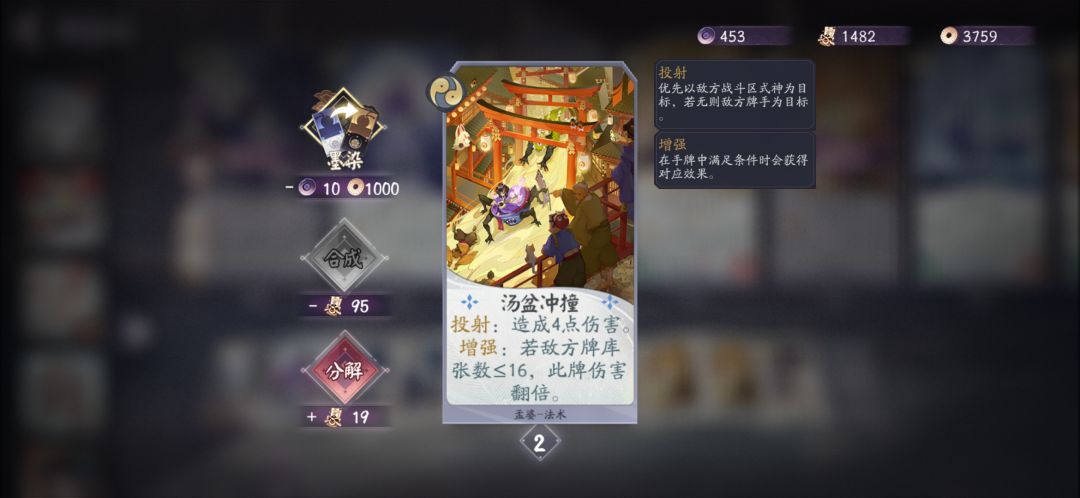 这牌有多强相信不用我再说一遍了,先手无敌系列,如果你想带着这个卡组去天梯,这牌是必须满二的(商店街战神的话,随缘玩玩呗。),打青缘撕诅咒和对面忘忧(对面过牌也可以撕书翁觉醒),打otk撕鸦天狗觉醒和万华,反正看准核心怼就对了。