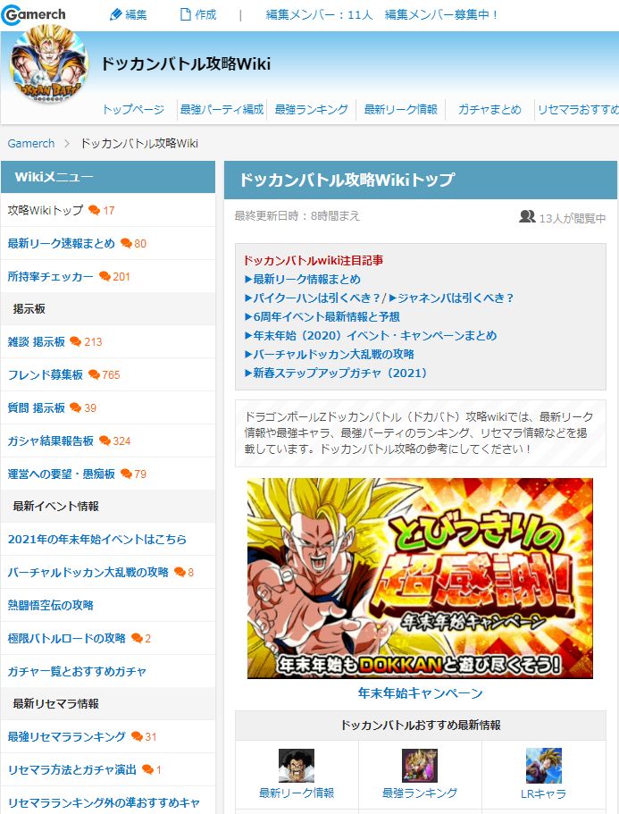 其他日文wiki站还有很多,比如常用的 kamigame 等,可以自己搜(关键字是:ドラゴンボールZ ドッカンバトル 攻略)
