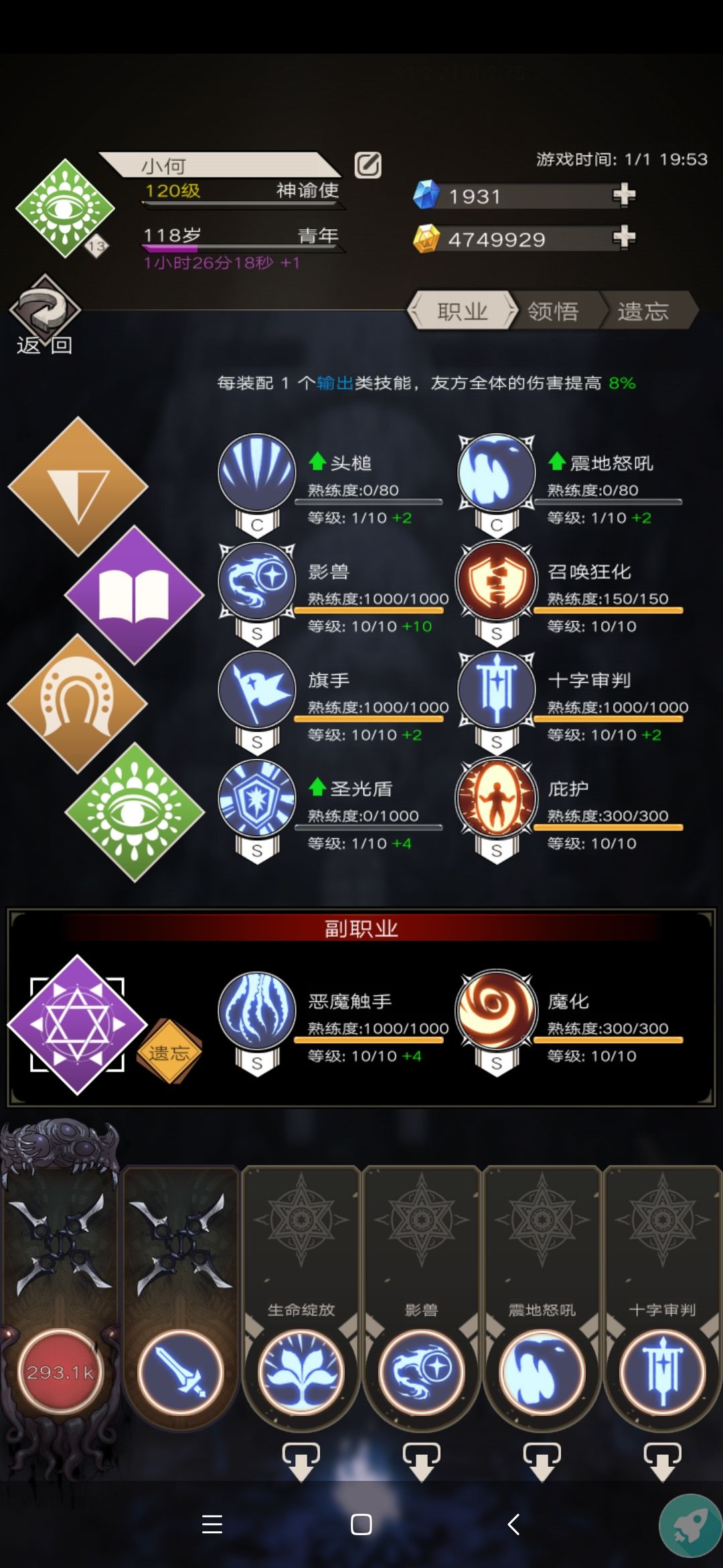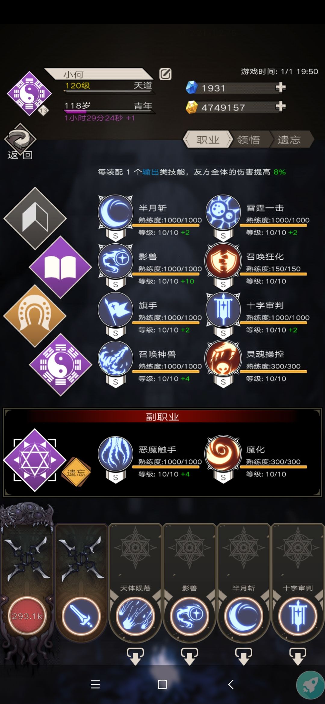 放弃时间或者战斗选择了星辰,所以技能都是为了触发星辰而准备的