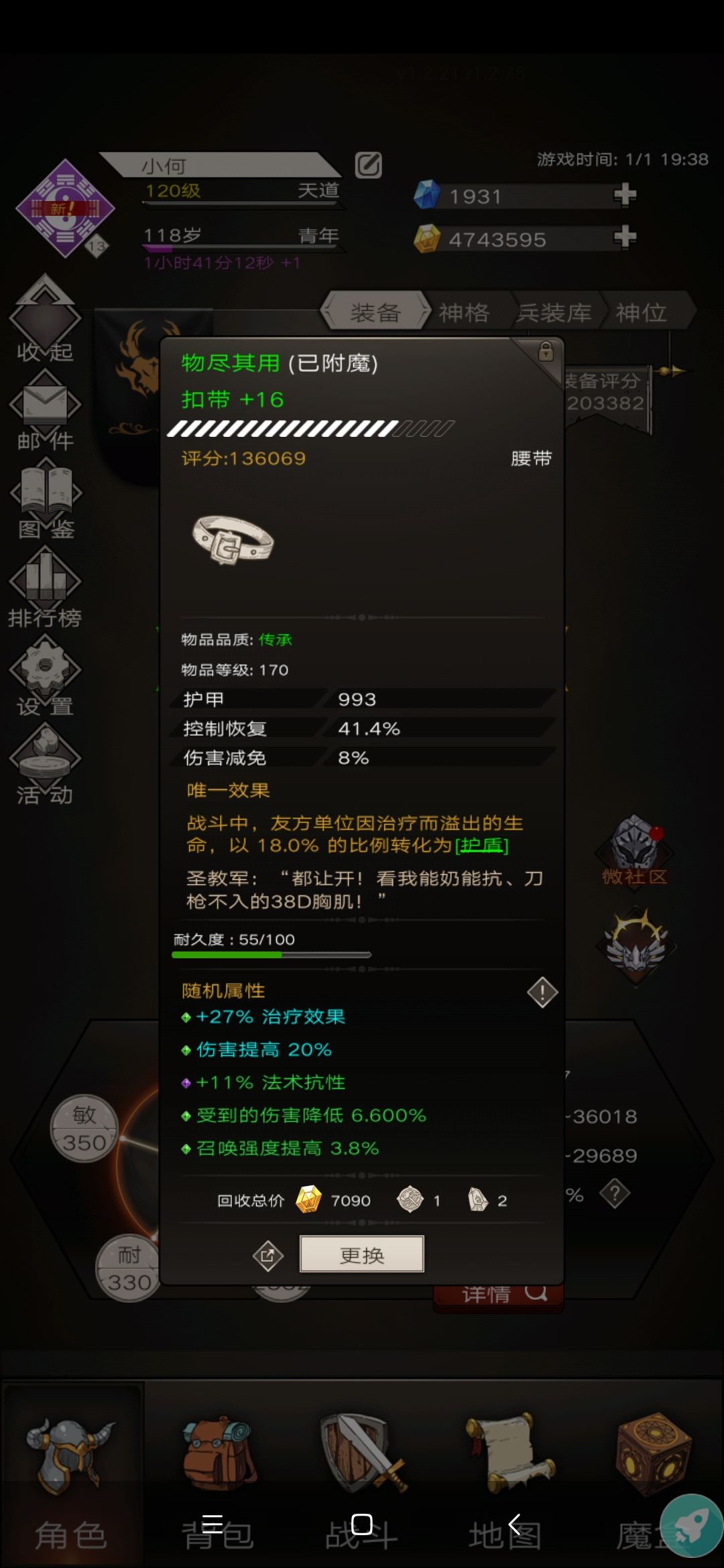 兵装属性面板(暴击格挡溢出可以换成冷却)