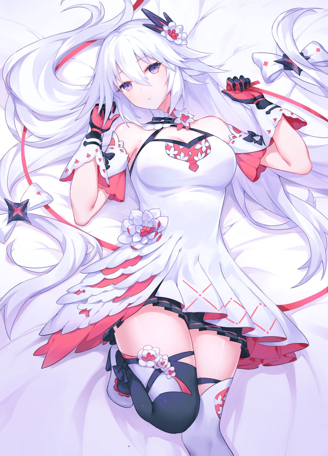 午夜,被折腾的心力交瘁满身疲惫、恨不得马上飞进温暖的被窝好好休息的绯金团长打开自己房门之后却看到了意料之外的惊喜——在茜的“好心建议”下,换上新裙子的银发少女刚刚收拾好了他柔软舒适的床铺,正在上面慵懒的伸着懒腰。