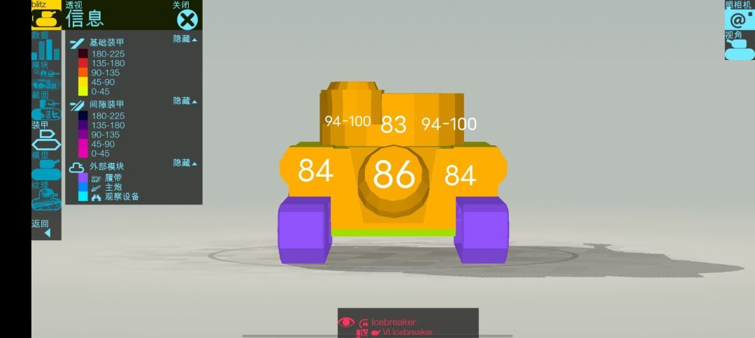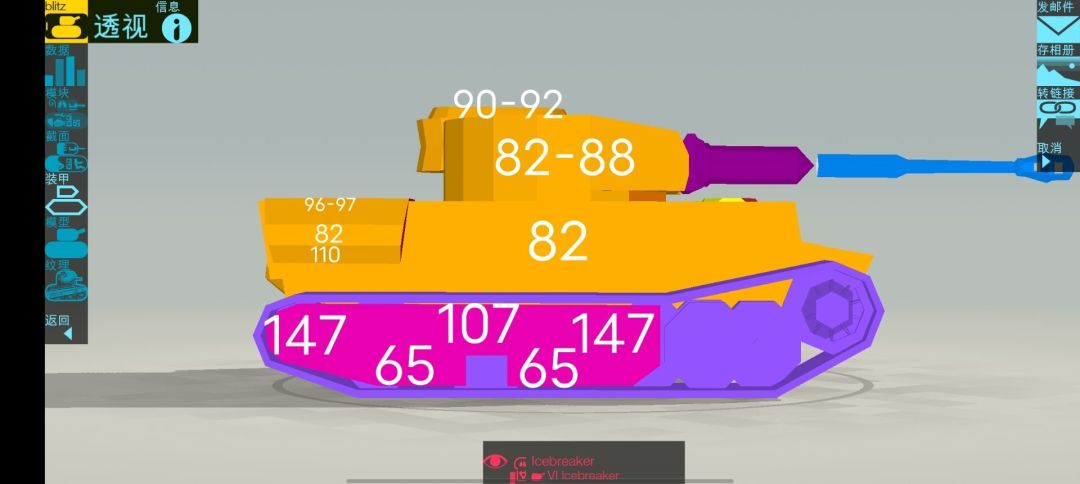 值得注意的是,这车履带是有侧板的,这个数据我用装检测试了n遍还是不太确定(25厚度等效这么高,德意志黑科技钢板,话说会不会被76三碾)