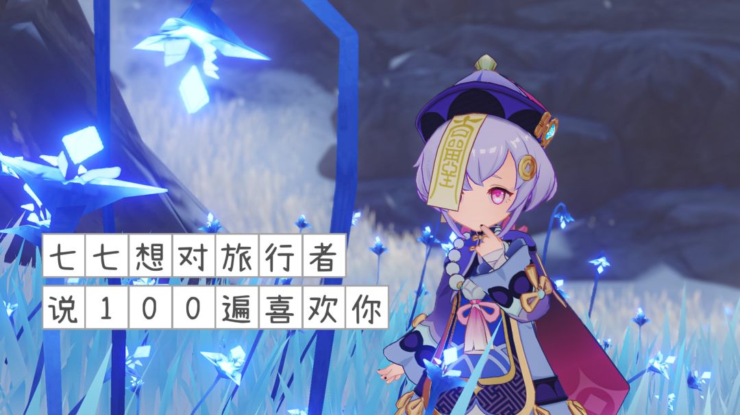 七七的好感度语音也是不停地用稚嫩的话对旅行者说“100遍”喜欢你