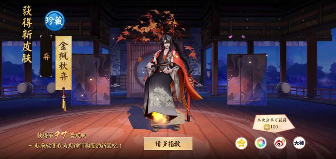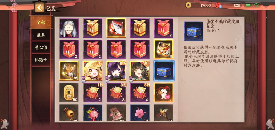 到分享的金达摩*1,补偿的金达摩*1,鎏金的金达摩*1,自己买了两个金达摩,加起来的皮肤是这些