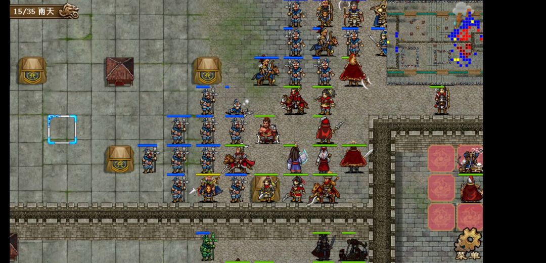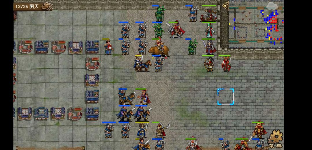 3.全灭刘封部,下回合上部援军赶到,我方剩余13人在下半部出现,敌方下部援军赶到