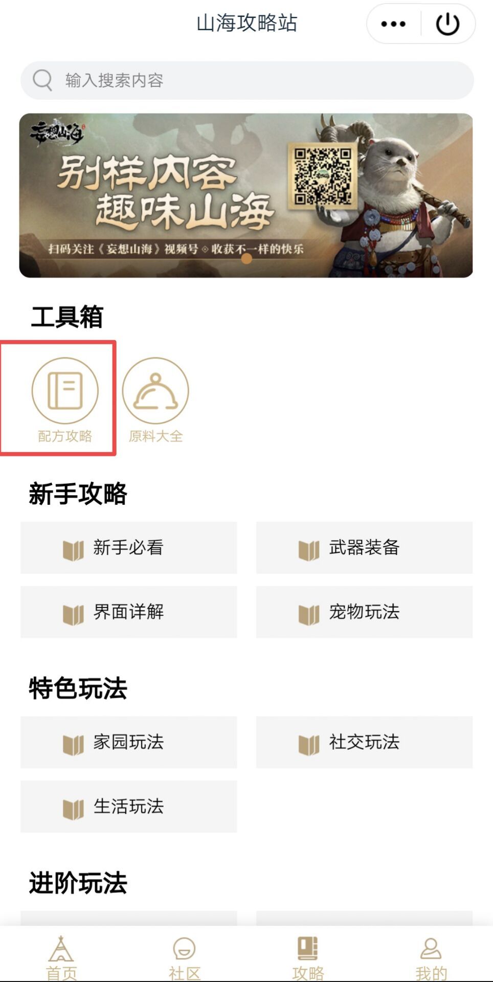 大部分的食材在QQ小程序的妄想山海藏宝阁基本都有攻略,如果你想做的食品在藏宝阁搜不到!那么,欢迎加入我们的大家庭!我们只聊马叉虫!不讨论游戏!