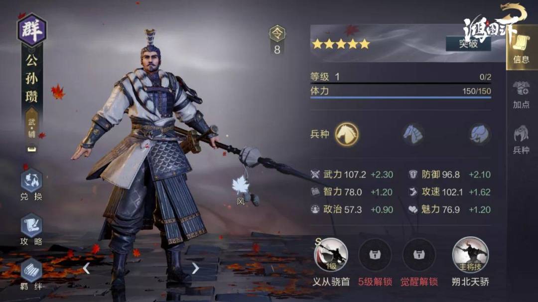 公孙瓒的武技效果对骑兵和弓兵的提升都很大,可以增强承伤能力,也可以强化输出能力,目前常见的搭配是配合马超或孙尚香这样的强力输出角色使用。