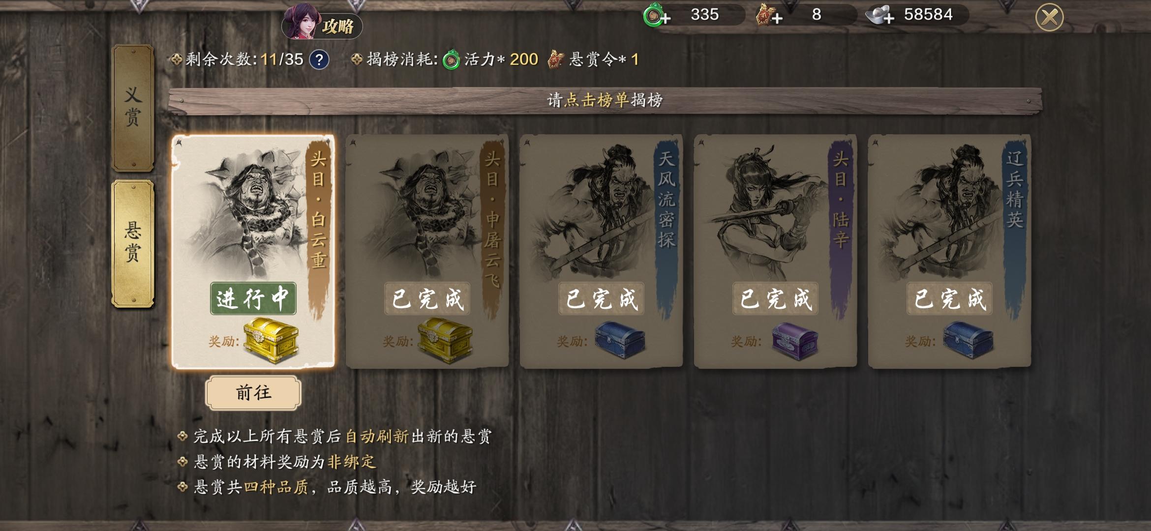 然后做悬赏开出两金一紫两蓝