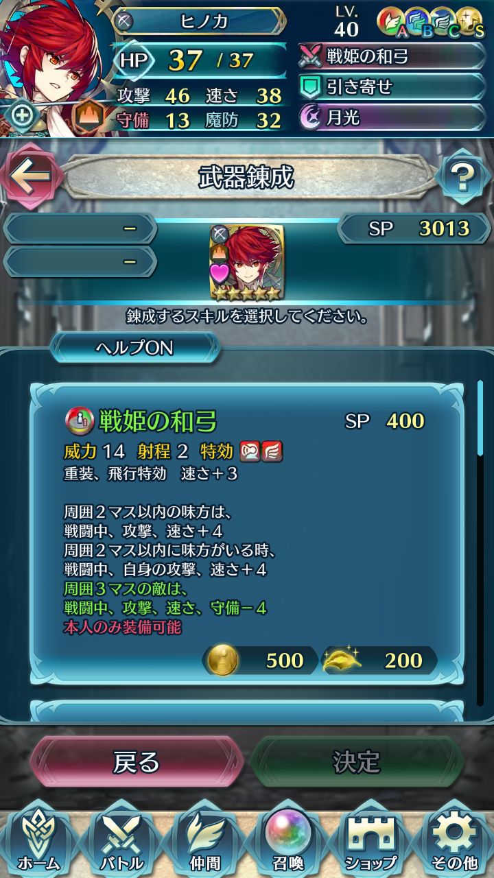 战斗开始时,自身hp50%以上则战斗中,攻+4、防+6,且敌人奥义发动变动量-1。