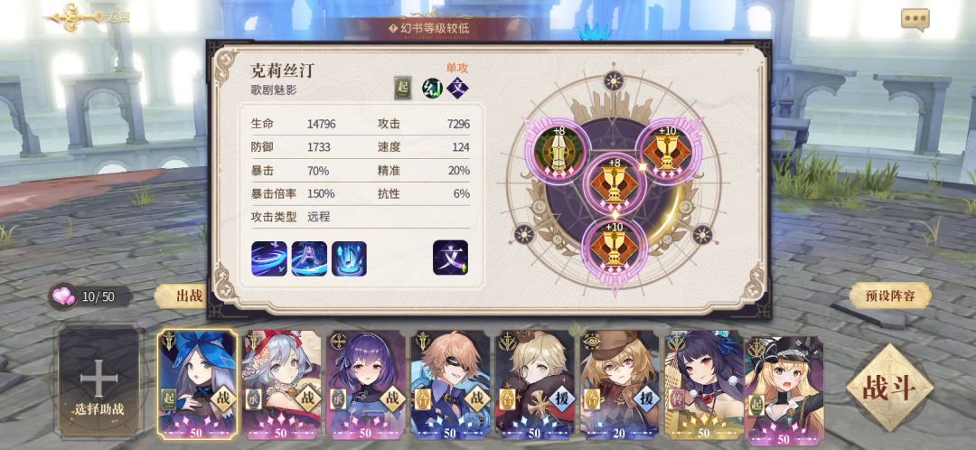 配速建议:一速天子罗宾,二速维京或者九州海底,三速歌剧魅影,四速猫(刷契印必须每个人125速度以上)