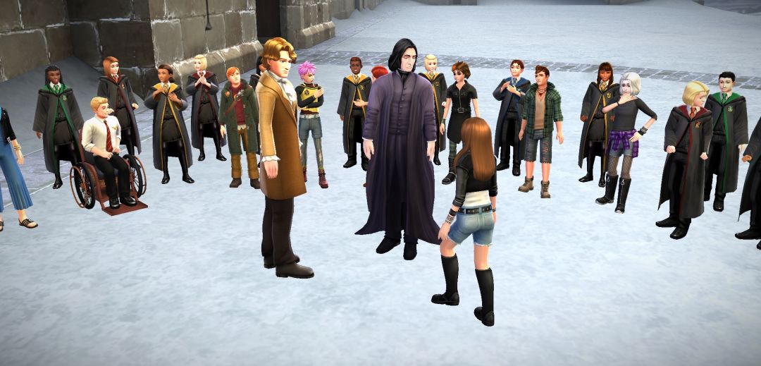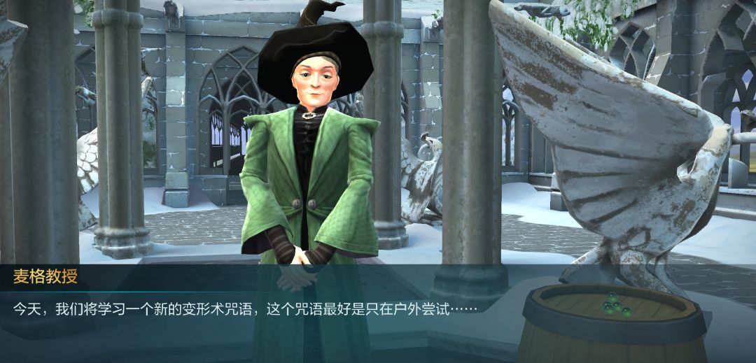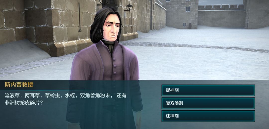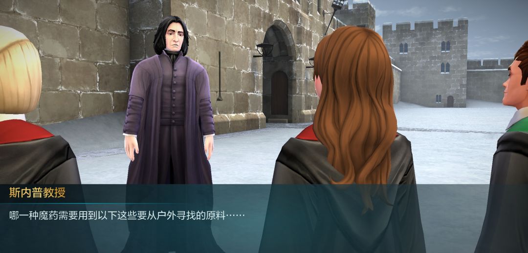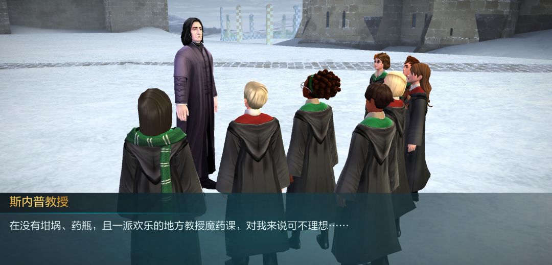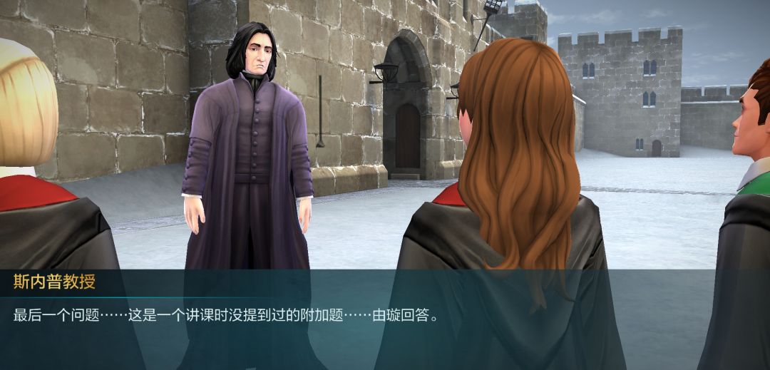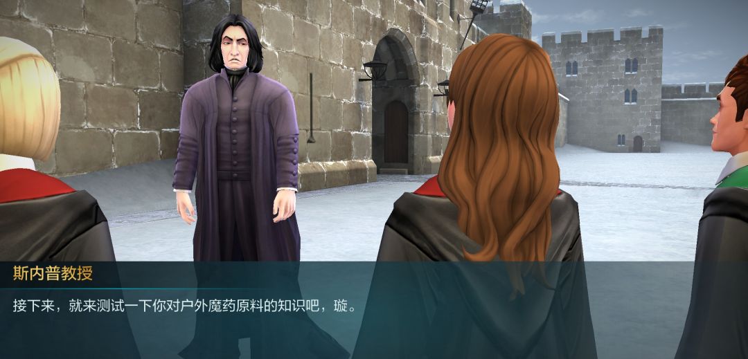 接下来是在空地,斯内普老宅男破天荒的户外课,好好珍惜吧,这里要用心一点,在过对话的时候注意一下斯内普讲的知识点,一会有测试的。(巴纳比的憨憨言论大家看看就好了)