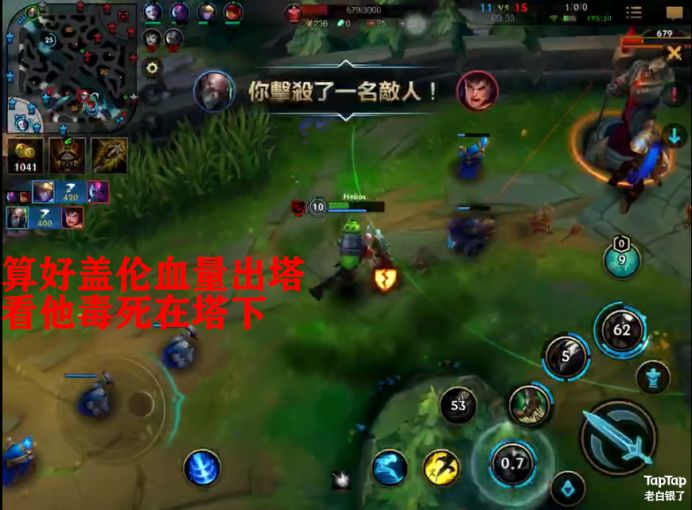 讲完基础部分,我们再来过一段炼金的实战吧!这一局前期我们一直和盖伦保持了五五开的对线,盖伦的前期战斗力比起炼金要强上很多,但我们秉持着前期打不还手骂不还口但一直放毒恶心你的淤泥原则顺利发育到了两件套,此时正是我们的强势期,上线见到盖伦先开毒清兵顺便勾引盖伦。
