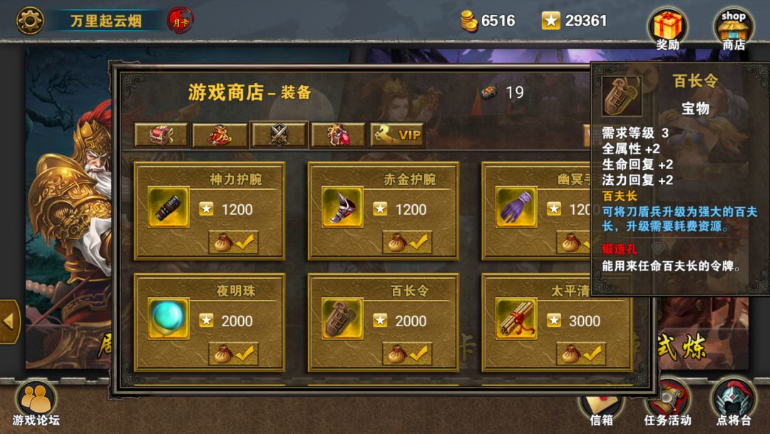 百长令,全属性2,法回命回2,可将刀盾兵升级为百夫长。