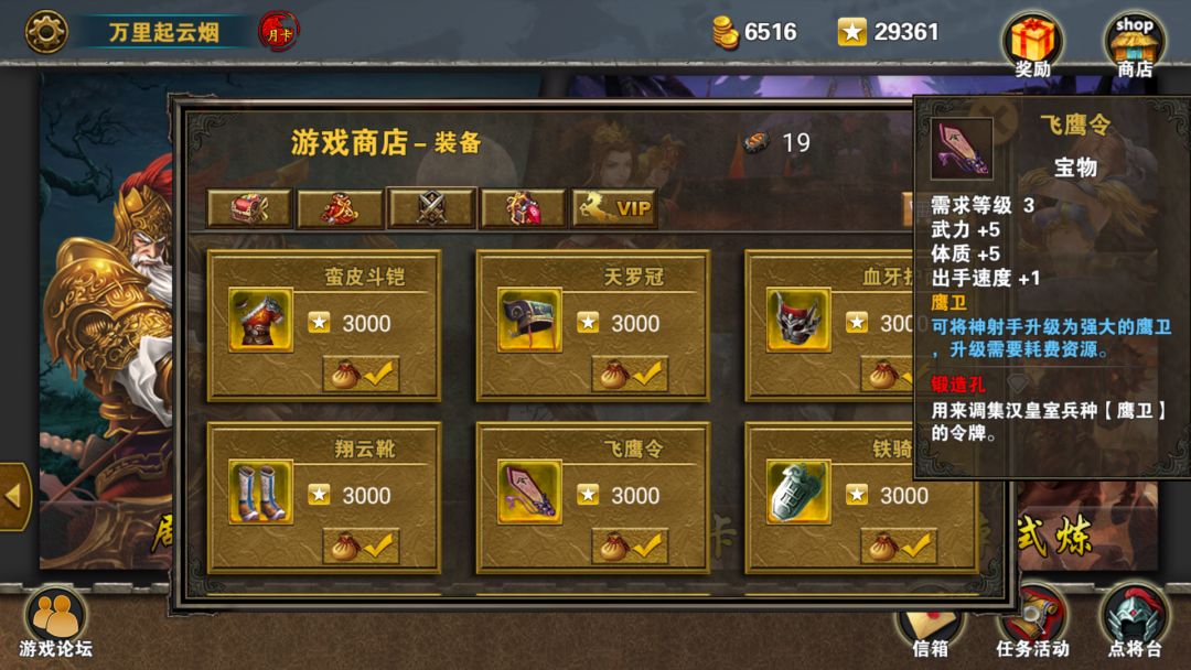 飞鹰令,5武5体,手速+1,可将神射手升级为鹰卫。