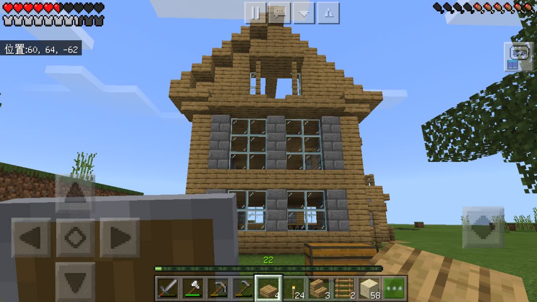 肝了3小时的成果,纯生存不能飞还得不断撸树撸石头是真的顶,洗澡去了,争取今晚把他搞完,其实用深色橡木应该会好看一点,不过我懒得去找了😂😂😂