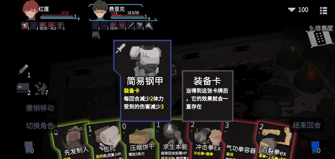 不过,简易装甲的副作用是每回合会掉两点体力,于是一回合只能玩1点体力