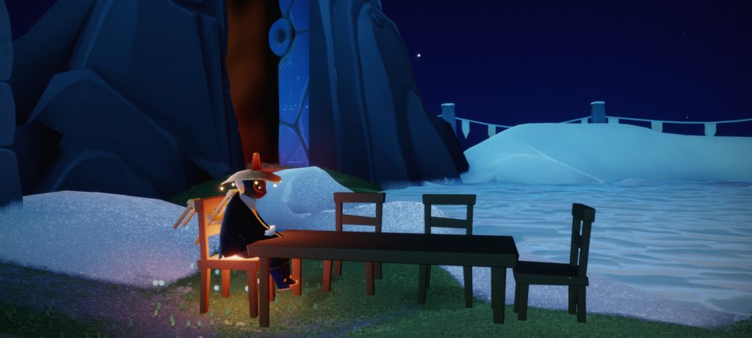 事件:去跑圣岛的时候就注意到了他们4个,我当时趁着他们烧花的时候就拿着蜡烛蹭过去点亮了他们,发现是一个菇菇➕矮人面具的无翼,和3个黑斗,他们身上都背了3支笛子,2个带了鹿角,1个黄鼠狼面具。跑完了圣岛便回了遇境,一回遇境就对无翼做了有好多小爱心冒出来的4级动作,对那几个黑斗做了3级磕头动作,有一个黑斗也对我做了磕头动作。然后我就去拿出了我的桌子,放在了禁阁门口前面准备聊天,无翼好像要睡觉了,然后就下线了,其间有一个人去换了元旦限定的蓝色斗篷。