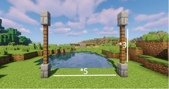 首先,我们使用石砖墙和云杉木栅栏摆出如图样式,注意:两个石砖墙要间隔5个方块~