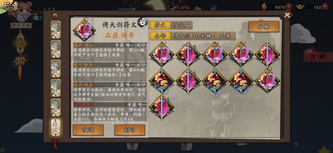 倚天还好,冰天和朱雀准备两个符文一把一个不用红红刻印。