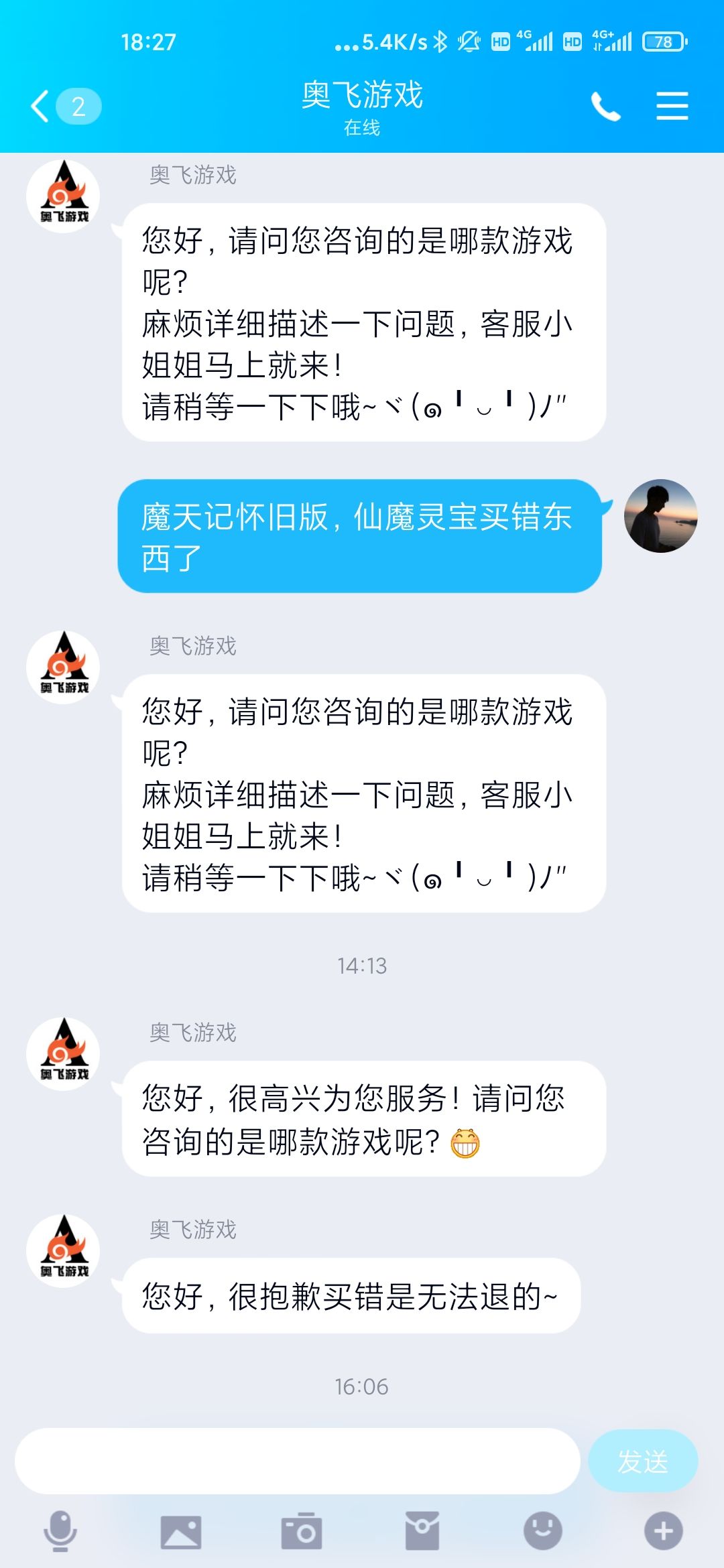 首先你奥飞只有一个客服吗,等了大半天一直稍后,然后就是死不承认自己有BUG,还扯上你们的技术人员,你们的技术人员不是有目共睹的?现在游戏BUG满天飞,修改器没人管,你们的技术做的可是真棒啊,玩了这么久第一次和你们客服打交道就被恶心到,真有你的飞飞