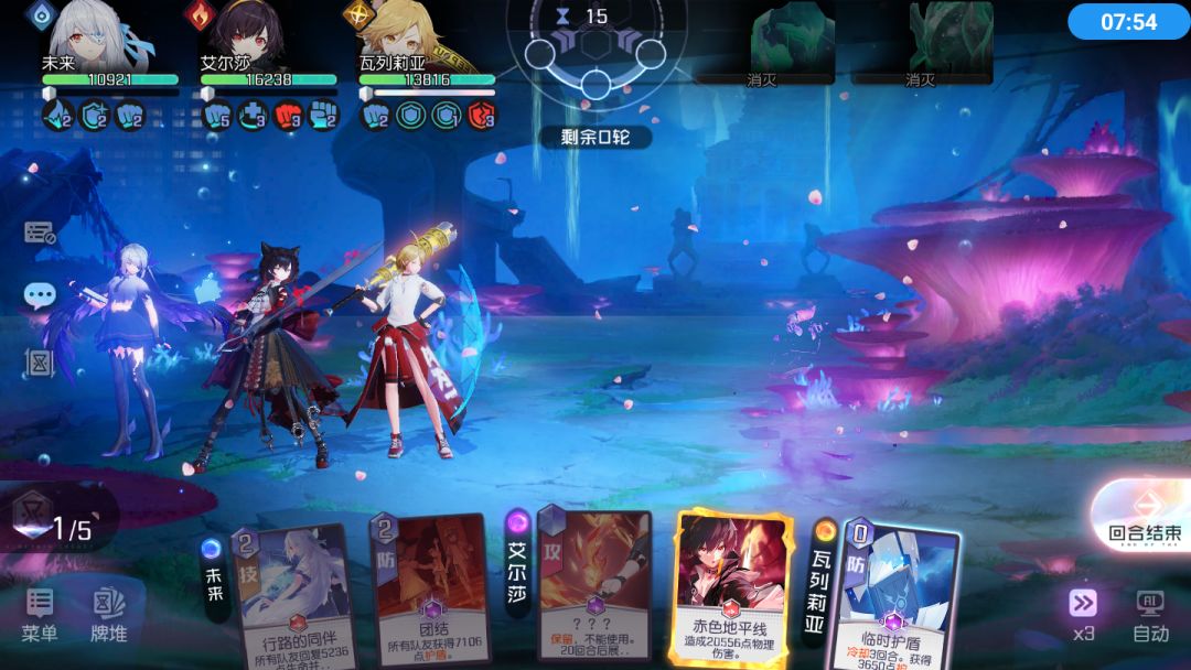 攻略君推荐百搭御三家,护盾第一人还是得未来,未来绯阶后将专属装备点到10就够用了。为了防止减员守护和支援都配备上高护盾卡牌,艾尔莎为了配合低费打出终极技带了两个亢奋,为了能有斩杀效果也带了亚斩。