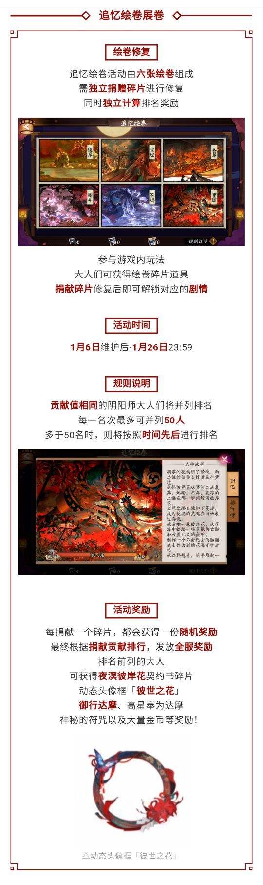 夜溟彼岸花追忆绘卷展卷,专属召唤活动将启!