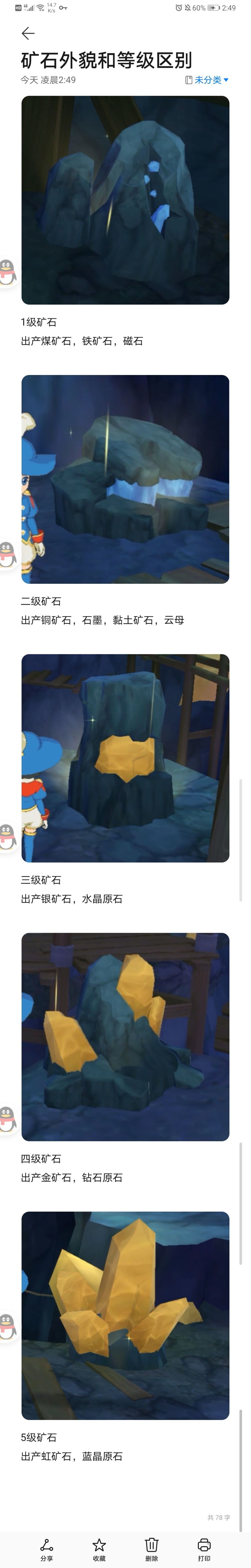 主要见下图,1级原矿是裸露在外的,花1t就能挖开,挖开后产出铁矿石,煤矿石,磁石等一级矿石加上随机矿砂和石头,2~5级原矿需花1t挖开大石块之后,看到下图中的原矿,然后再次花费1~4T挖开(等级越高,花费体力越多)