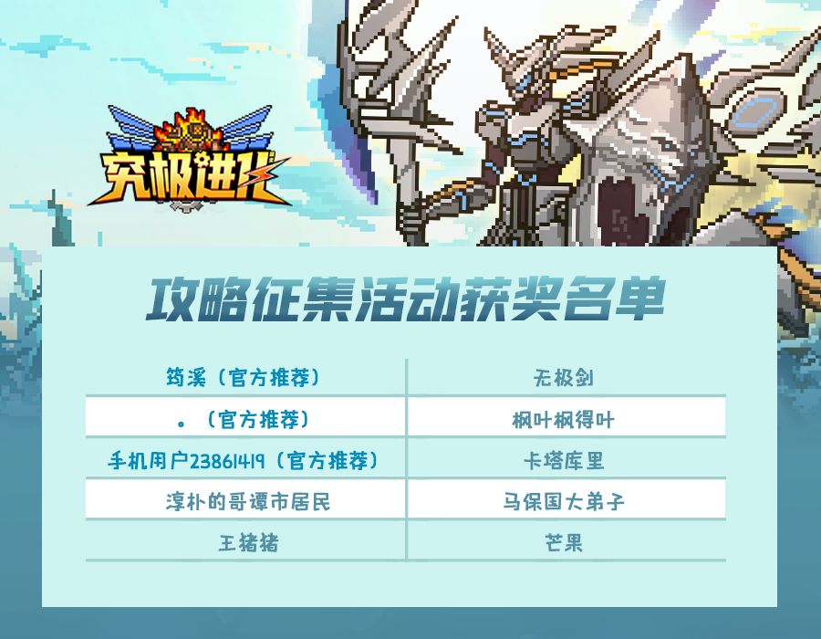《精灵究极进化》攻略有奖征集活动获奖名单公布!