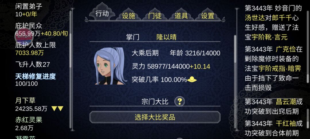 什么也不点了,意外事件一直跳内门太特么多了,天阶法宝一裤兜子.....