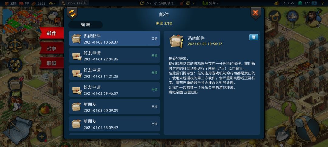 我的波斯号每天送人武器,今天突然就被禁社交功能7天,希腊号偶尔送送,就没被禁,请问是现在禁止送武器了吗?