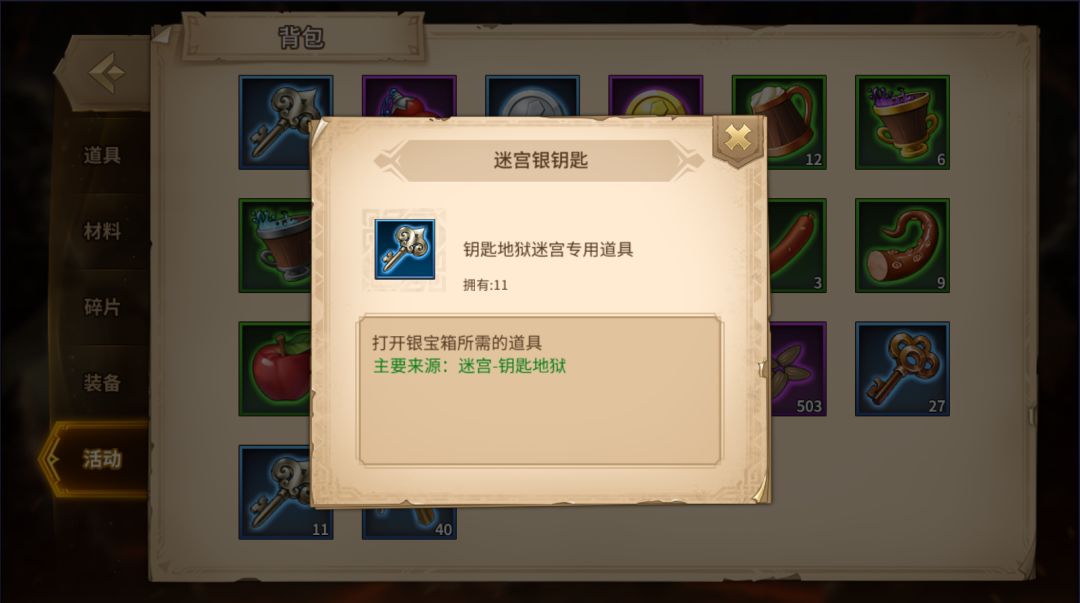 钥匙地狱里挖出的钥匙是能够保存的,出了地图也不会消失。只要点开背包就能看见,有标注是专用道具哦!