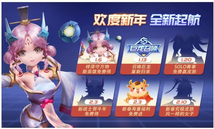 1月6日-2月2日 战斗手册完成任务达指定等级,可免费兑换新英雄白泽和白泽头像;史诗自选皮肤,豪华进阶版得。