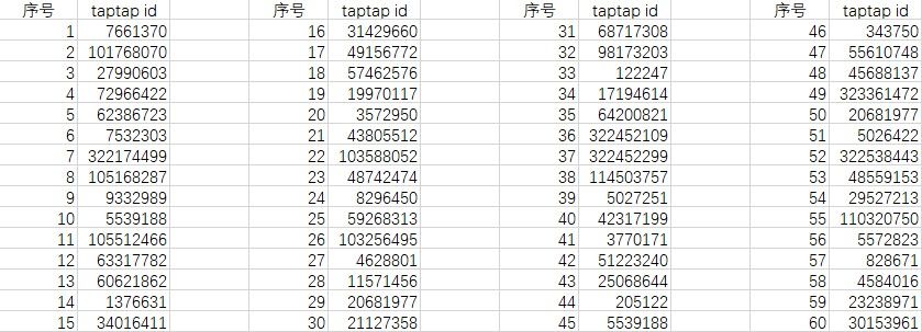 本次《蜜糖联萌》限量删档测试将于1月7号10点正式启动!恭喜以下探险者们获取本次内测资格,我们将在 1月6号 通过TapTap站内信发送激活码,届时请留意哦~!