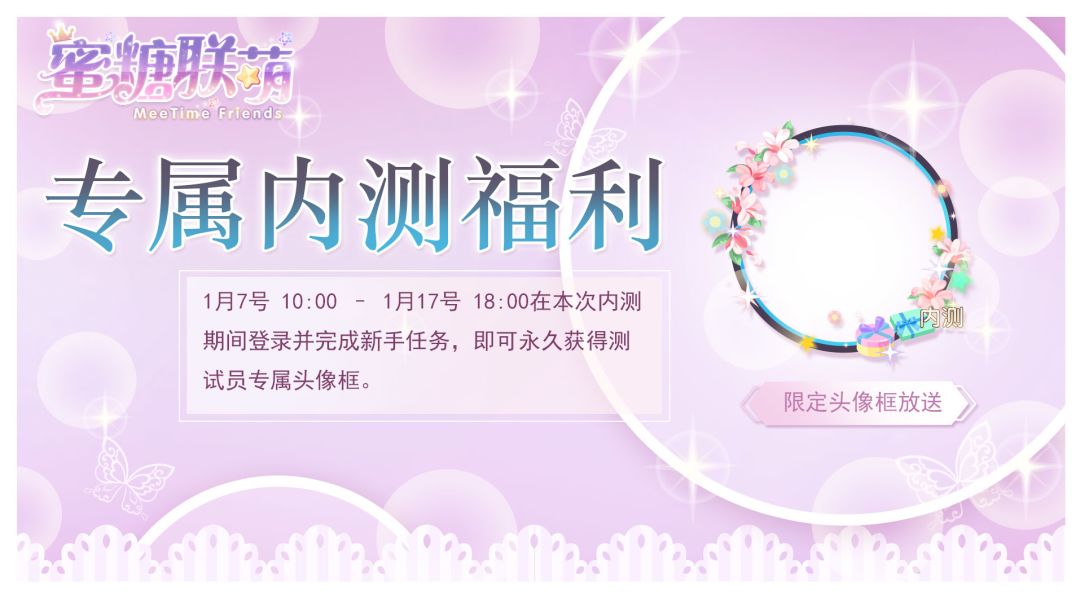 参加内测期间登录并完成新手任务,即可永久获得神秘测试员专属头像框。