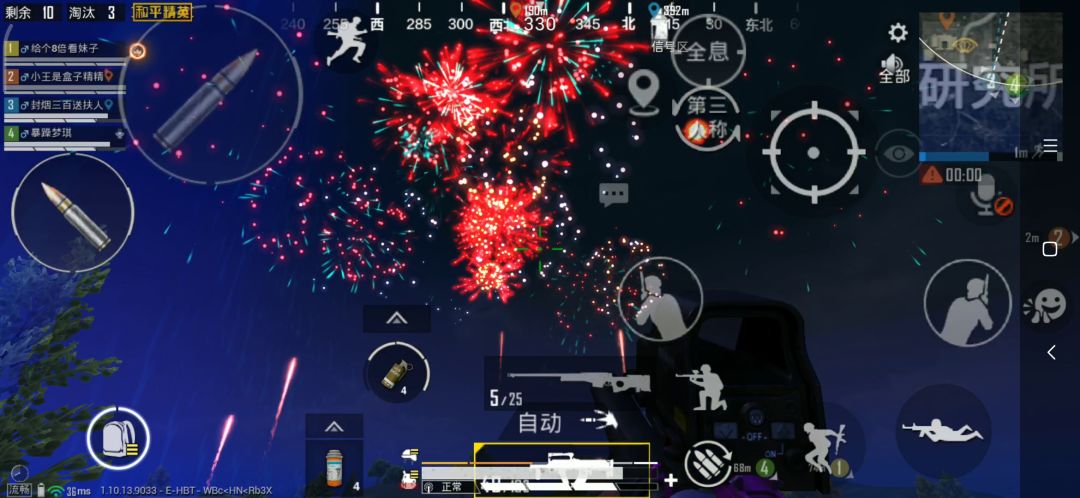 为了向新年表示庆祝,我也是为了赶上和平精英3天的烟花庆祝,特意3天都进行了体验,也是在学校(研究所),宿舍楼,飞机上分别录下了新年礼花的美丽时刻,最为有意义的是学校(研究所)的那次(下方的第2个视频)![[嗒啦啦2_托腮]](https://img-tc.tapimg.com/market/images/13def4d3d7fd71471d57c8780f5b9aa6.gif)