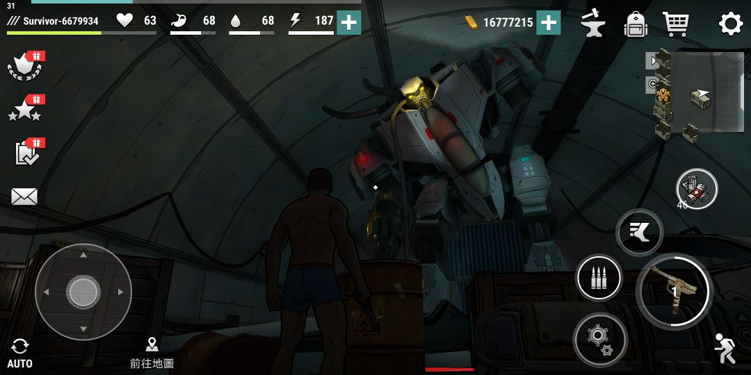 要是能修改血量和伤害就太好了,正版和盗版的区别就大概正版的爆率比较高,盗版的爆率就很低,有些东西很低级但是却很难刷得出来比如飞机叶片,方向杆,还有减震器,那些卡片就更不用说了,等级升的很慢,军事基地里有个机器人😂好像是彩蛋,到以后更新会不会机器人打僵尸,最后一副图我车子卡进里面去了,也不知道怎么回事,我坐车过去的车里面的东西也拿不到。
