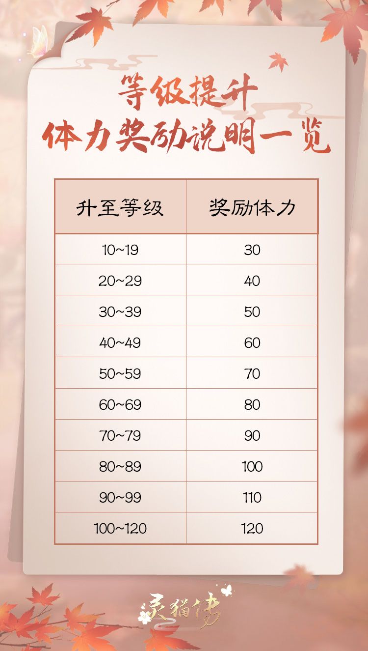 3、【预告】增加升级体力奖励:我们将在近期进行优化,小阁主达到10级以后每次升级可获得一定体力奖励,获得量与当前等级挂钩,具体规则见下表。已升级的小阁主,将于奖励机制更新后,一次性收到当前等级对应的体力奖励。具体时间将于更新前再次公告。