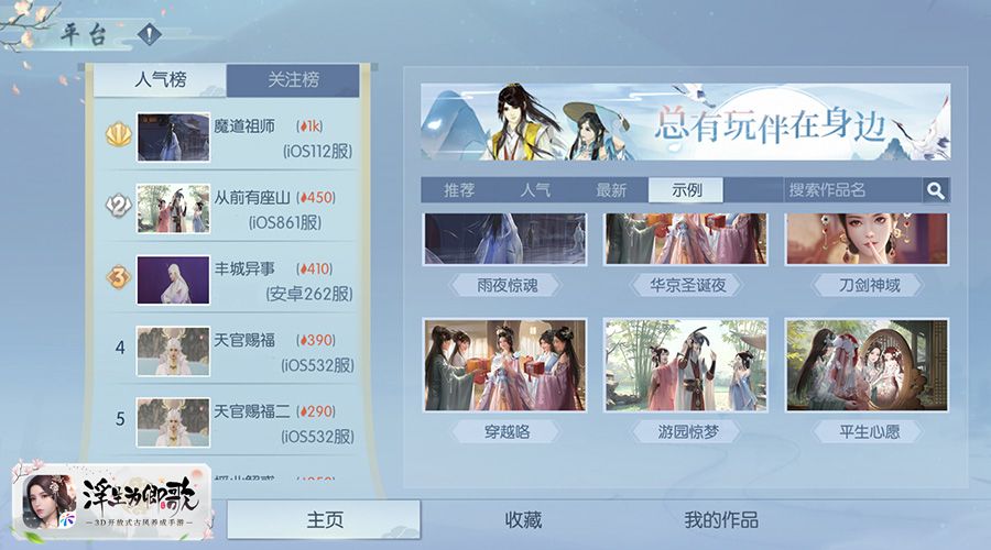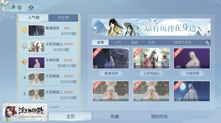 在造梦系统内,“人气榜”将显示人气最高的前30部作品,相同人气则遵循先到先得原则,而“关注榜”同样显示粉丝数最多的前30名作者,相同粉丝数也同样按照先到先得原则,在此基础上,将极大鼓励玩家的创作热情。