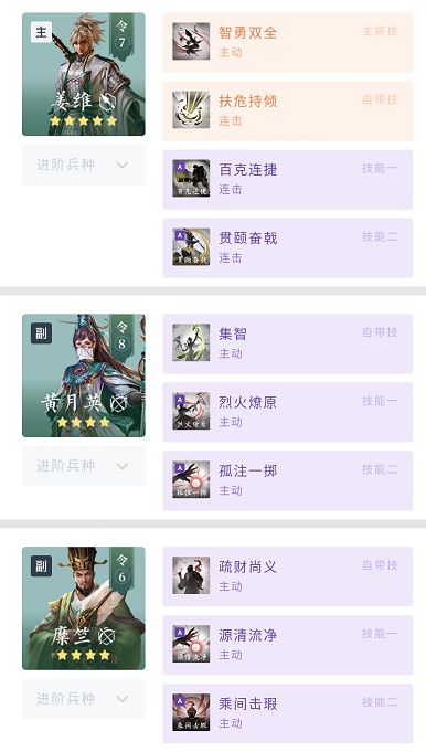 此外,也可以根据武将的属性、技能、伤害等分类搭配出“连击队”、“智暴队”等。