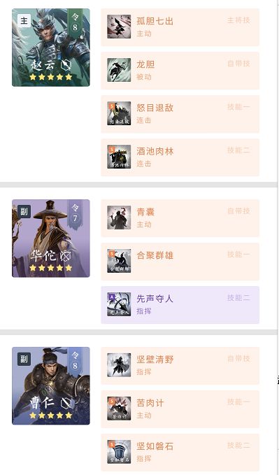 2、不同阵营武将搭配