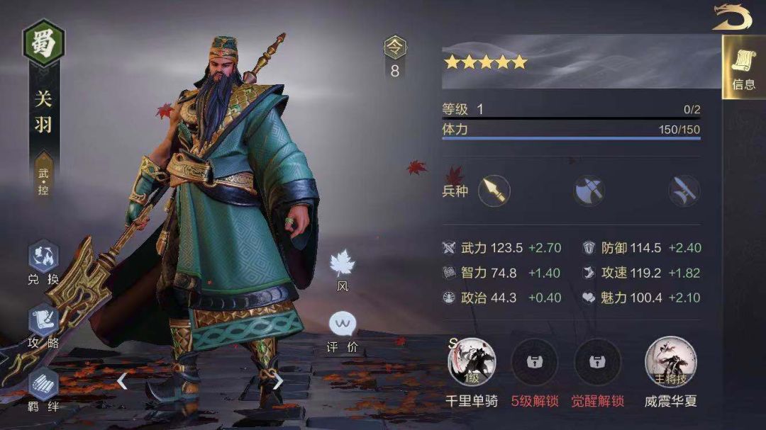 鸿图之下中每位三国武将都有对应的历史、羁绊、武将技以及独特的动画展示。以我们熟悉的“武圣”关羽为例,可以看出鸿图之下武将的几个特点。