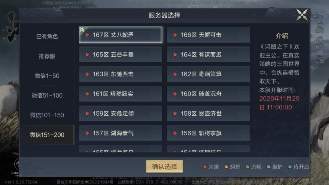 一般进入游戏后,系统会自动为我们分配游戏大区。这里不建议大家选靠前的区,因为靠前的区老玩家多,对于新手玩家而言,当进入游戏后发现自己进度远远落后于别人,且对游戏的理解也没有老玩家深刻,从而处处落后,影响游戏体验。