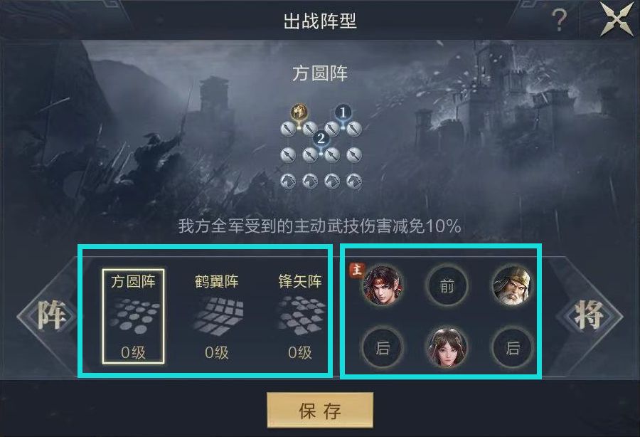 站位:前期(1-5级地)开局前可以点击查看要攻打的地格详情,根据守军地格站位,有针对性的摆放我方武将。
