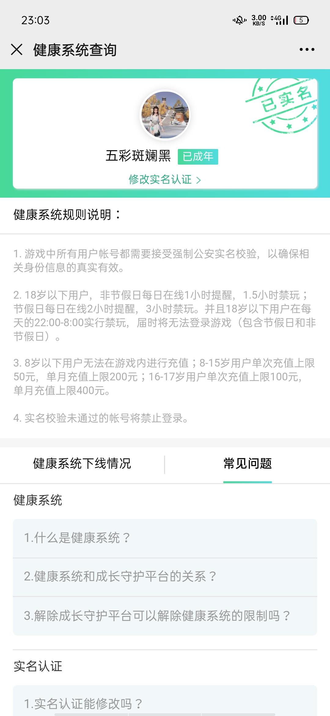 我微信实名认证了,也成年了,然后就在刚刚,直接给我强制下线,我还想单刷狻猊来的就差一点点血直接就给我踢下来了,再进游戏就这样了,麻烦官方告诉我这是为啥
