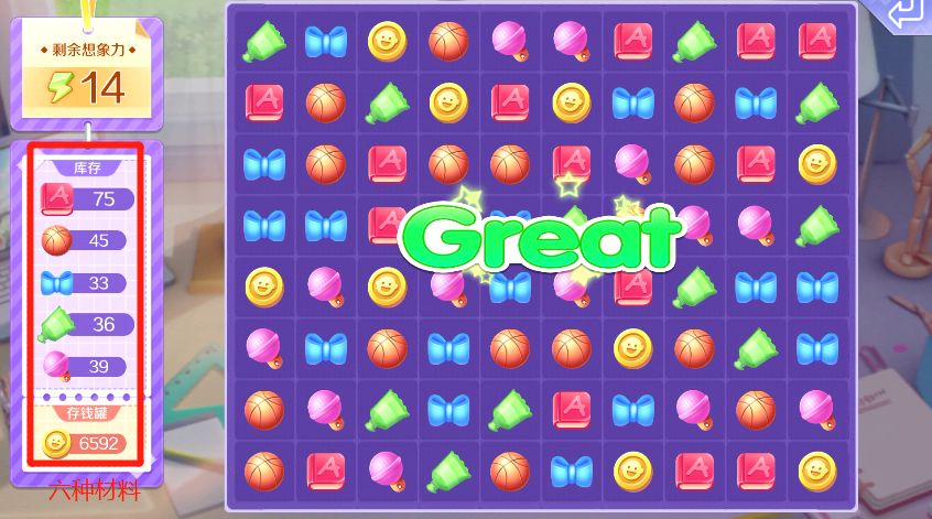 噔噔~先来为小主人们讲解一下,宝宝日常所需的六种货币&材料,分别为零花钱和开脑洞里获得的五种材料!